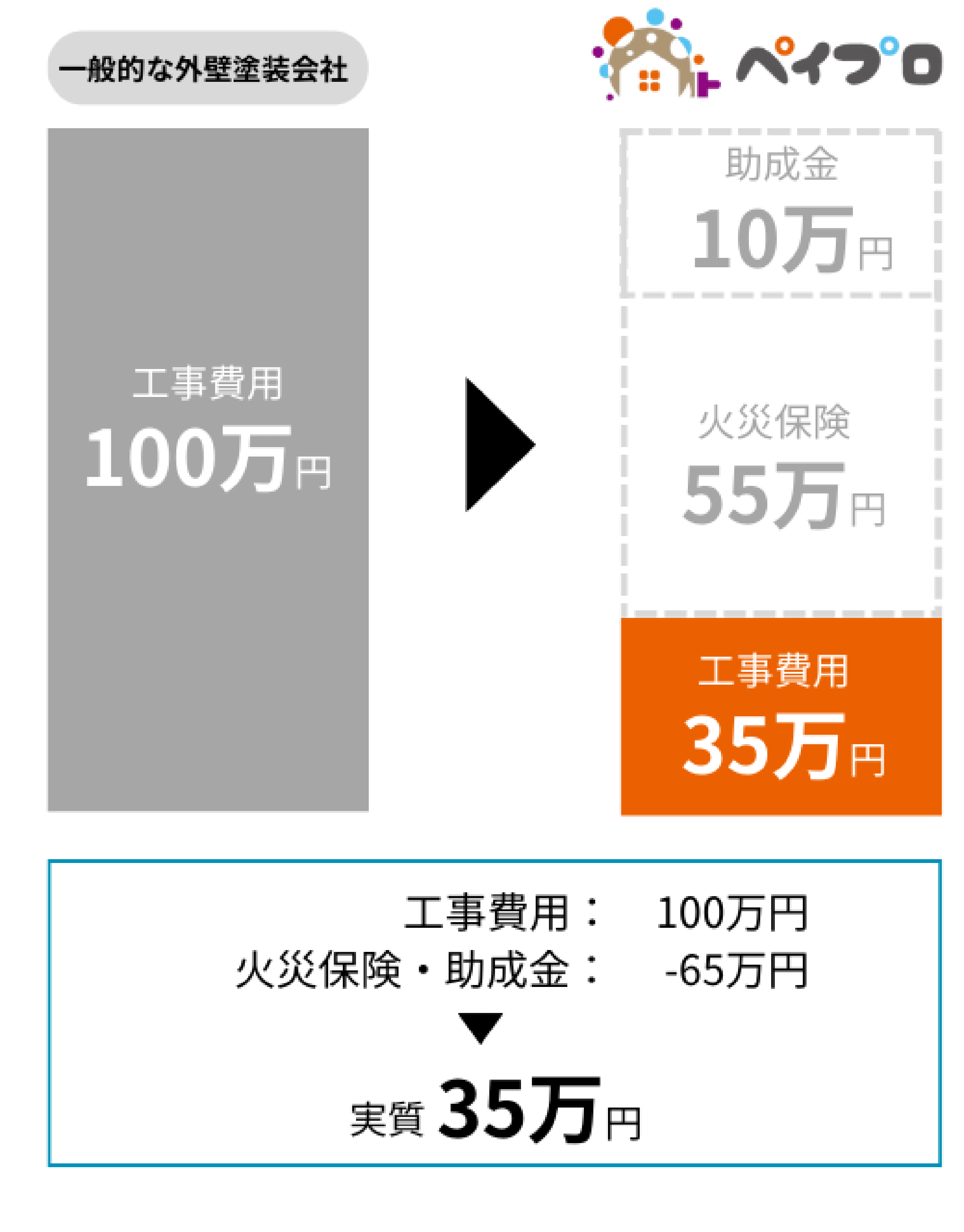 「ペイプロ」では無料で助成金や補助金の申請代行を行います。そのため工事費用が安くなります。